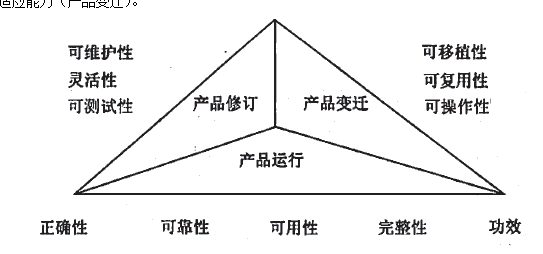 产品评价:注重软件质量评价的支持和评价过程; 产品质量:注重软件本身的质量度量模型。 软件质量评价的基本部分包括:质量模型、评价方法、软件的测量和支持工具。 标准的软件质量测度是这样建立的:软件质量模型分三个层次,第一层有6个影响软件质量的主要因素,称为“质量特性”。每个质量特性又可通过第二层的若干个子特性测量,第二层的每个子特性在评价时要定义并实施若干个度量。ISO9126资料性的附录中给出21个子特性。 8、评价需求 软件质量评价的目的是为了直接支持开发和获得满足用户和消费者要求的软件。最终目标是保证产品能提供所要求的质量,即满足用户(包括操作者、软件结果的接受者,或软件的维护者)明确和隐含的要求。 (1)评价中间产品质量的目的 决定(是否)接受分包商交付的中间产品; 决定某个过程的完成,以及何时把产品送交下个过程;