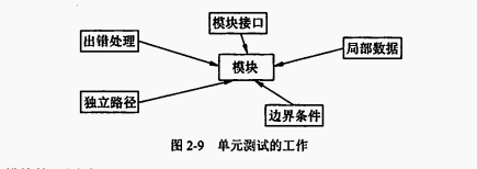 55、需求说明书评测 编制良好的需求说明书8条原则。 原则1:功能与实现分离,即描述要“做什么”而不是“怎样实现”。 原则2:要求使用面向处理的规格说明语言,讨论来自环境的各种刺激可能导致系统做出什么样的功能性反应,来定义一个行为模型,从而得到“做什么”的规格说明。 原则3:如果目标软件只是一个大系统中的一个元素,那么整个系统也包括在规格说明的描述之中。 原则4:规格说明必须包括系统运行的环境。 原则5:系统规格说明必须是一个认识的模型,而不是设计或实现的模型。 原则6:规格说明必须是可操作的。 原则7:规格说明必须容许不完备性并允许扩充。 原则8:规格说明必须局部化和松散的耦合。 56、需求说明书的框架 需求说明书是分析任务的最终产物,通过建立完整的信息描述、详细的功能和行为描述、性能需求和设计约束的说明、合适的验收标准,给出对目标软件的各种需求。 57、需求说明书评测内容。 需求说明书评测作为需求分析阶段工作的复查手段,应该对功能的正确性、完整性和清晰性,以及其他需求给予评测。评测的主要内容是: (1)系统定义的目标是否与用户的要求一致; (2)系统需求分析阶段提供的文档资料是否齐全; (3)文档中的所有描述是否完整、清晰,准确地反映用户要求; (4)与所有其他系统成份的重要接口是否都已经描述; (5)被开发项目的数据流与数据结构是否足够、确定; (6)所有图表是否清楚,在不补充说明时能否理解; (7)主要功能是否已包括在规定的软件范围之内,是否都已充分说明; (8)软件的行为和它必须处理的信息、必须完成的功能是否一致; (9)设计的约束条件或限制条件是否符合实际; (10)是否考虑了开发的技术风险; (11)是否考虑过软件需求的其他方案; (12)是否考虑过将来可能会提出的软件需求; (13)是否详细制定了检验标准,它们能否对系统定义是否成功进行确认; (14)有没有遗漏、重复或不一致的地方; (15)用户是否审查了初步的用户手册或原型; (16)项目开发计划中的估算是否受到了影响。 58、概要设计说明书评测 设计说明书的框架 设计说明书的框架内容: (1)可追溯性 (2)接口 (3)风险 (4)实用性 (5)技术清晰度 (6)可维护性 (7)质量 (8)各种选择方案 (9)限制 (10)其他具体问题 59、软件编码规范评测 程序实际上也是一种供人阅读的文章,有一个文章的风格问题。程序良好的风格表现在源程序文档化、数据说明的方法、语句结构的输入/输出方法这四个方面,软件编码规范评测也是围绕这四个方面展开。 60、源程序文档化 (1)符号名的命名。符号名即标识符,包括模块名、变量名、常量名、标号名、子程序名、数据区名以及缓冲区名等。 (2)程序的注释。注释分为序言性注释和功能性注释。 (3)标准的书写格式。 61、数据说明 (1)数据说明的次序应当规范化。 (2)说明语句中变量安排有序化。 (3)使用注释说明复杂数据结构。 62、语句结构 在设计阶段确定了软件的逻辑流结构,但构造单个语句则是编码阶段的任务。语句构造力求简单、直接,不能为了片面追求效率而使语句复杂化。 63、输入和输出 输入和输出信息是与用户的使用直接相关的。输入和输出的方式和格式应当尽可能方便用户的使用。一定要避免因设计不当给用户带来的麻烦。因此,在软件需求分析阶段和设计阶段,就应基本确定输入和输出的风格。系统能否被用户接受,有时就取决于输入和输出的风格。不论是批处理的输入/输出方式,还是交互式的输入/输出方式,在设计和程序编码时都应考虑下列原则。 64、开发阶段 单元测试内容: 在进行单元测试时,测试者需要依据详细设计说明书和源程序清单,了解该模块的I/O条件和模块的逻辑结构,主要采用白盒测试的测试用例,辅之黑盒测试的测试用例。 使之对任何合理的输入和不合理的输入,都能鉴别和响应。这要求对所有的局部的和全局的数据结构、外部接口和程序代码的关键部分,都要进行桌面检查和严格的代码审查。 在单元测试中进行的测试工作如图2-9所示,需要在五个方面对所测模块进行检查。