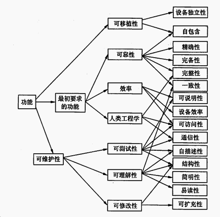6、软件产品质量评价标准GB/T 16260-1996。它是一个分层质量模型,有6个影响质量的特性。 7、国际标准化组织1991年颁布了ISO-9126-1991标准《软件产品评价—质量特性及其使用指南》。我国也于1996发布了同样的软件产品质量评价标准GB/T16260-1996。它是一个分层质量模型,有6个影响质量的特性。如图所示说明了质量特性与质量子特性的层次结构。
