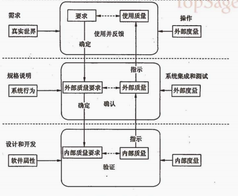 | 第3章 软件质量与评价 | 2021.11.16 | 1、质量的定义 反映实体满足明确和隐含的需要的能力特性的总和。 2、质量是多维的概念,包括:实体、实体的属性和对实体的观点; 质量实体特性的总和,满足明确或隐含要求的能力 3、测度与度量 测量需要首先建立质量指标体系或质量模型,然后使用特定测量方法才能实施测量。 测度的运用时间里测量方法的依据,也是解决软件质量测量的关键; 在软件质量中用于测量一种量化的标度和方法即为“测度”,而名词的“度量”用来指测量的结果; 4、软件质量模型 影响软件质量的因素可以分为两大类:可直接测量(如每个功能点的错误)和间接度量(如可用性、可维护性)。 5、McCall质量模型 集中在软件产品的三个重要方面:操作特性(产品运行)、承受可改变能力(产品修订)、新环境适应能力(产品变迁)。