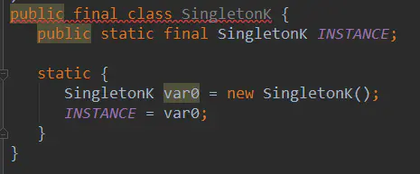 由于Kotlin自身语法简洁的优势,写单例模式也就一两行的代码,这里没有深究一些高级用法,比如Lazy,属于Kotlin延迟属性的委托,有兴趣的可以自己研究下。