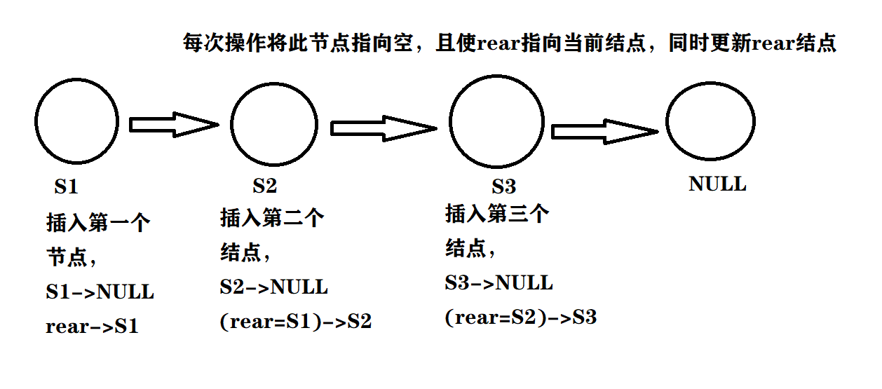 s->next=NULL;//尾插法,则每一个结点next为NULL,即为链表结尾