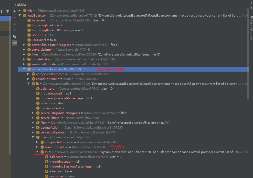 - 找到 RibbonLoadBalancerClient 类,在此处打断点