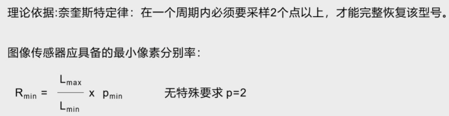Rmin最小像素分辨率,lmin最小识别的特征或细节(最小分辨率),Pmin采样数。
