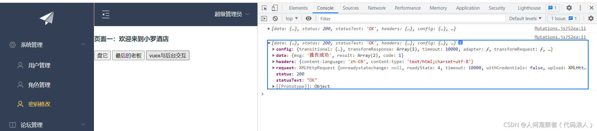 如果我们需要异步操作,Mutations就不能满足我们需求了,这时候我们就需要Actions了运行效果: