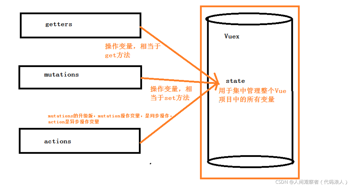 vuex的核心概念:store、state、getters、mutations、actions