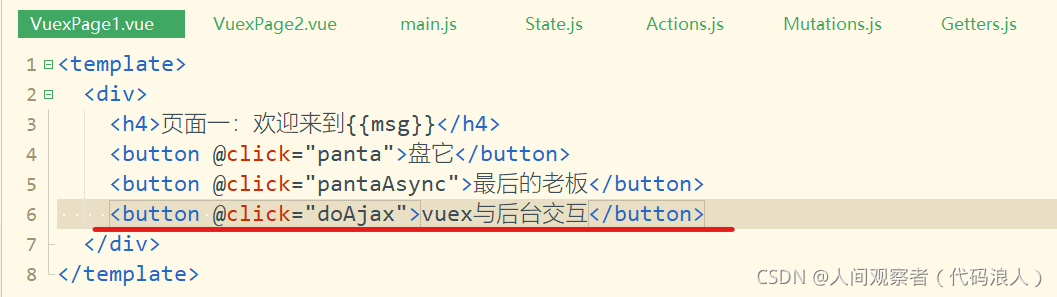 <button @click="doAjax">vuex与后台交互</button>