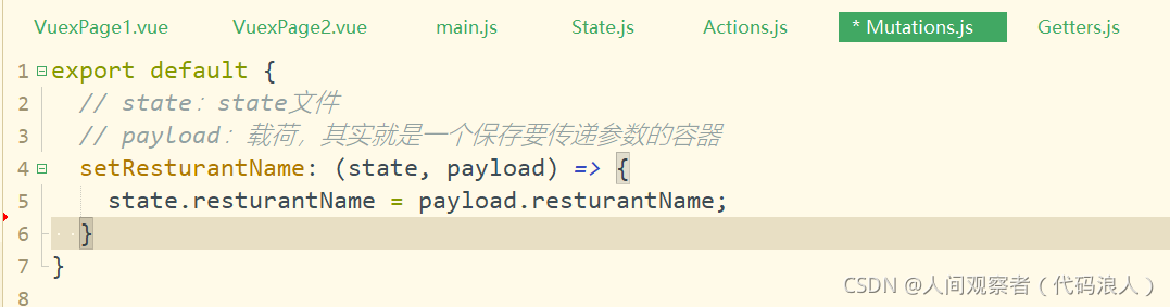 Mutations.js(处理数据的唯一途径,state的改变或赋值只能在这里)