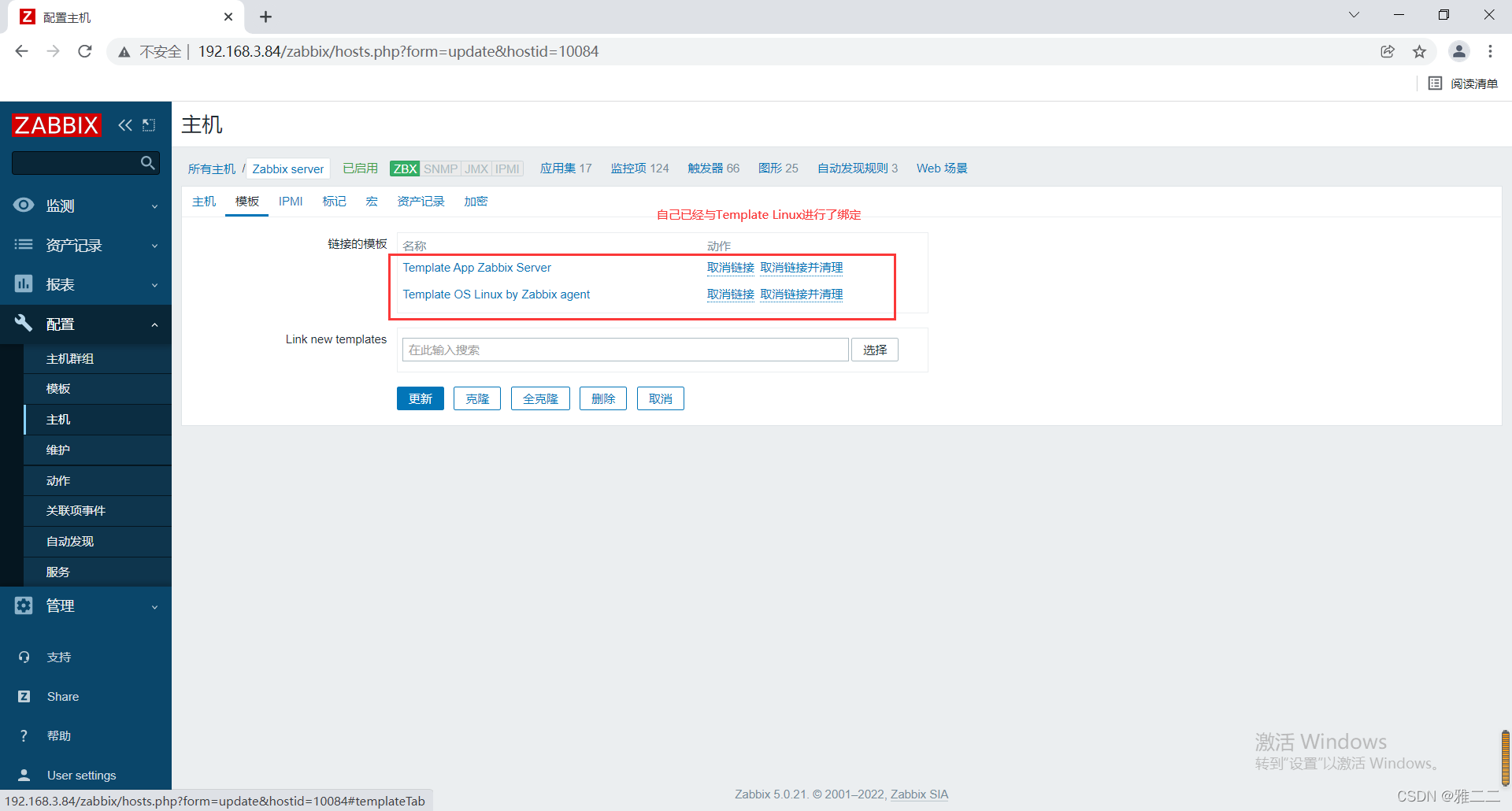 192.168.3.82-localhost 的可用性没有亮;点进去“192.168.3.82-localhost”;点击“模板”
