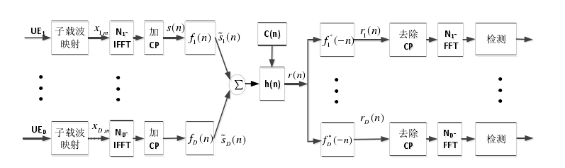 的匹配滤波器。接收端采用匹配滤波器,这样做的原因如下:首先,确保接收端的信号不会存在来自其他UE的干扰;其次,可以最大化每个UE的最大接收信噪比。