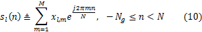 表示CP的长度,所分配的载波范围是{1,2,M}。将子带一上的添加CP后的OFDM符号数据可以表示为: