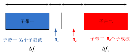 必须是偶数。由以上所述的子载波间隔与子带宽度可得子带一与子带二的子载波数量分别为48、24。假设子带一的子载波映射范围是[1,24],其中,0号子载波表示直流分量,不进行子载波映射,再假设