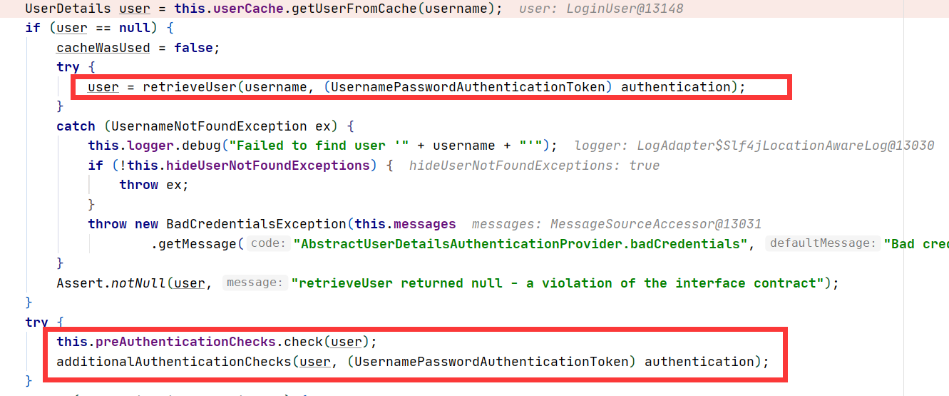 在查询结束后,还会有一些认证preAuthenticationChecks、preAuthenticationChecks、additionalAuthenticationChecks