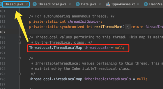 ThreadLocal是每个线程独有的存储数据的数据类,它在Thread中的存在方式如下: