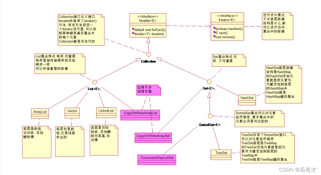 ■LinkedHashSet:底层数据结构采用链表和哈希表共同实现,继承了HashSet的优点,链表则保证了元素的存储顺序,线程不安全,效率高。