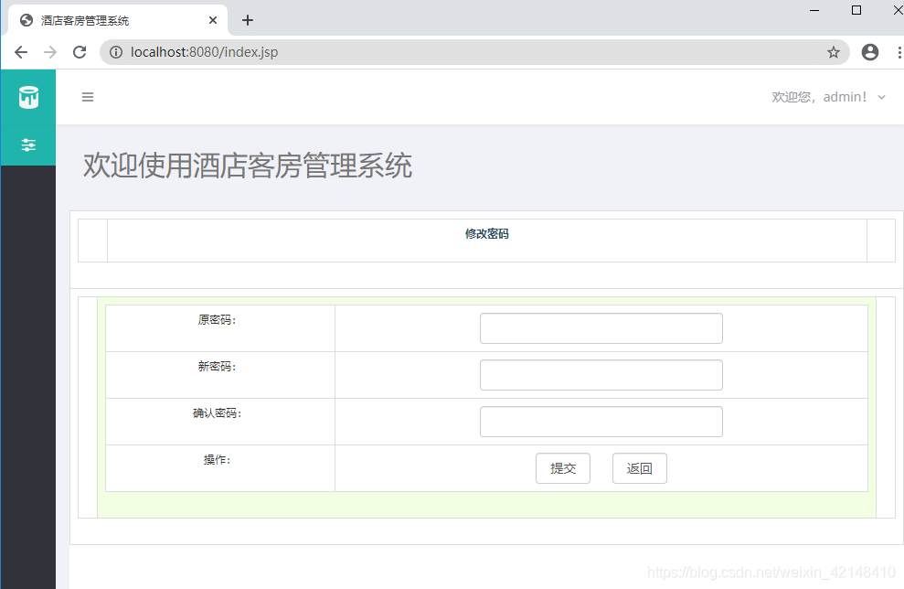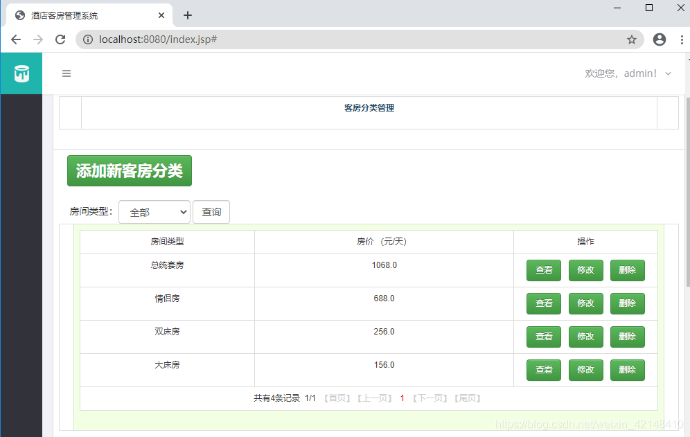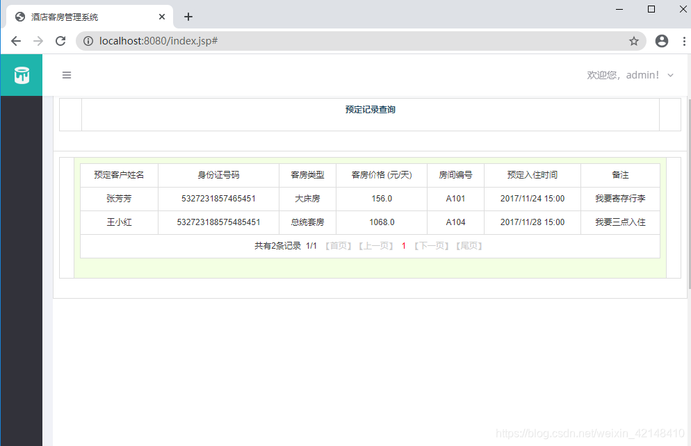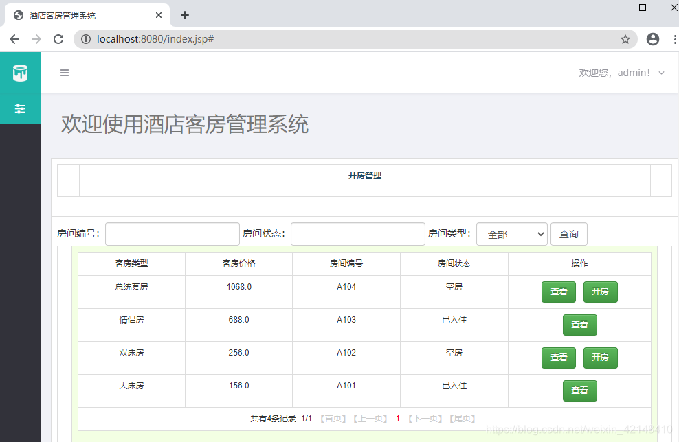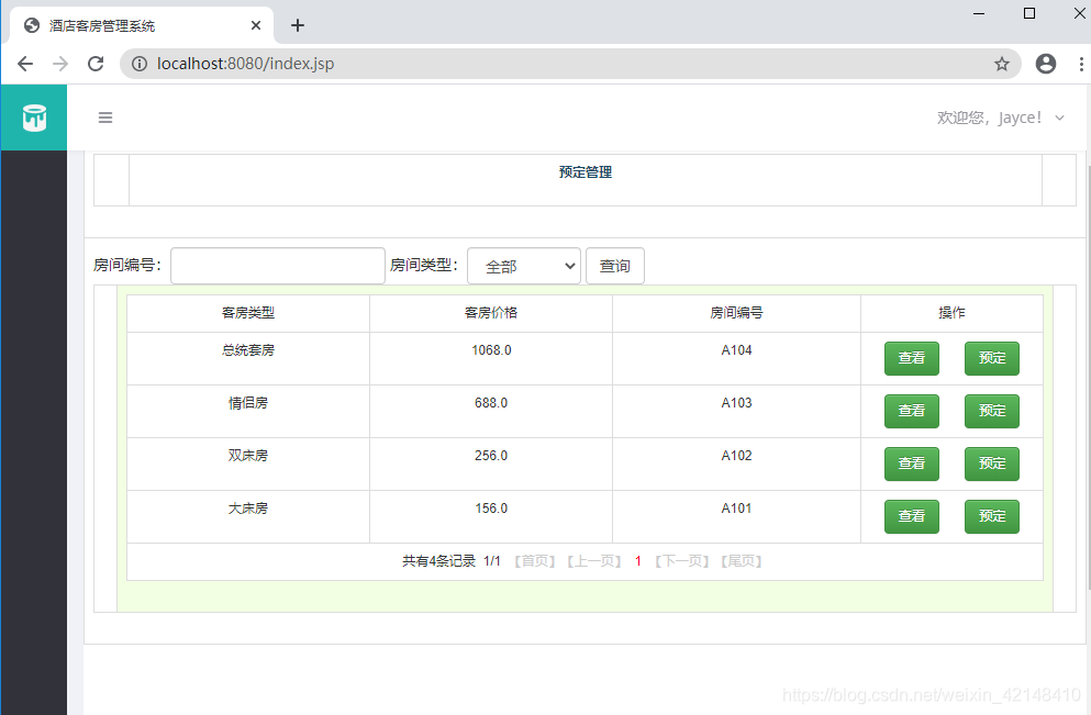 本系统是分两个角色登录的,一是管理员,二是用户。管理员可以对客房进行最大权限的操作,比如入住、退房、管理用户等等。好,介绍就到这里,如果想学习请到CSDN下载源码,当然关注我也可以下载。