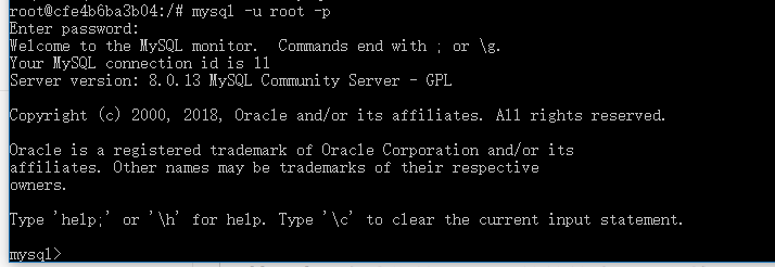 进入MySQl容器:使用的docker exec命令,-it是参数,bash表示创建一个交互界面