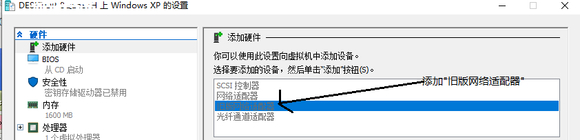 完成后, 在虚拟机中添加一个旧版网络适配器。