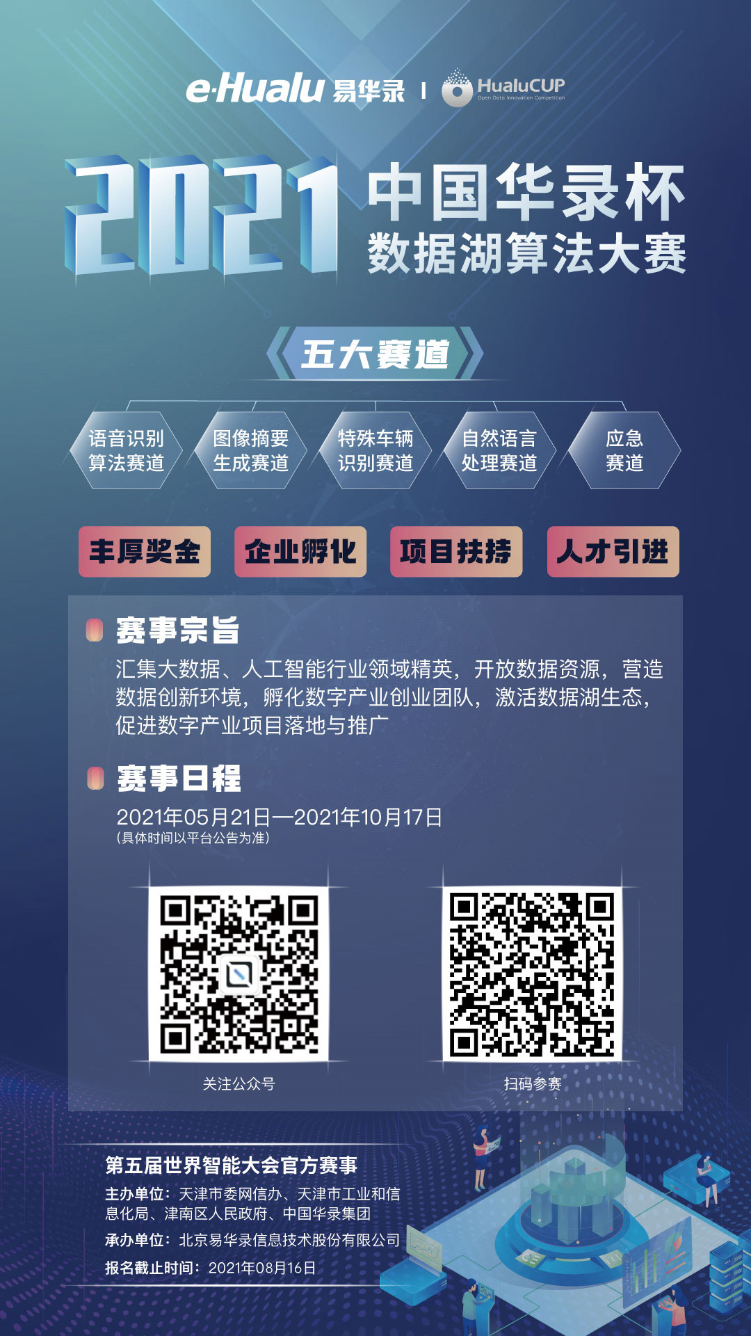2021中国华录杯·数据湖算法大赛火热进行中!总奖金69.5万元,提供“人才录用直通车”创业扶持&双创中心办公场地,更有入驻数据湖科技企业孵化器,加速产品和项目落地的机会!