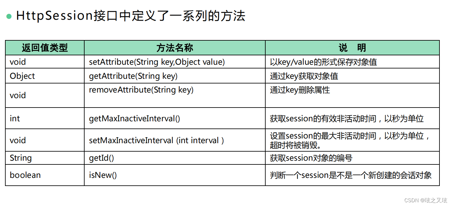 ● Servlet API中,定义了HttpSession接口,用来封装会话对象。