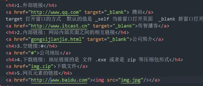 <a href="跳转目标" target="目标窗口的弹出方式">文本或图像k/a>