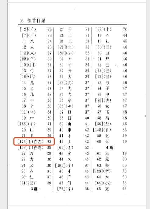 从前面使用部首目录的例子中可以看出,如果我们不知道一个字的部首是什么的话,那基本是没办法使用这个目录的。这说明仅仅通过笔画数(第二个字段)是没办法使用部首目录的。