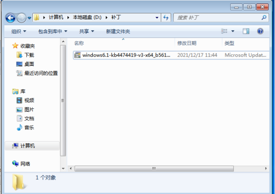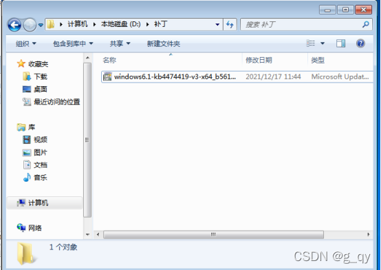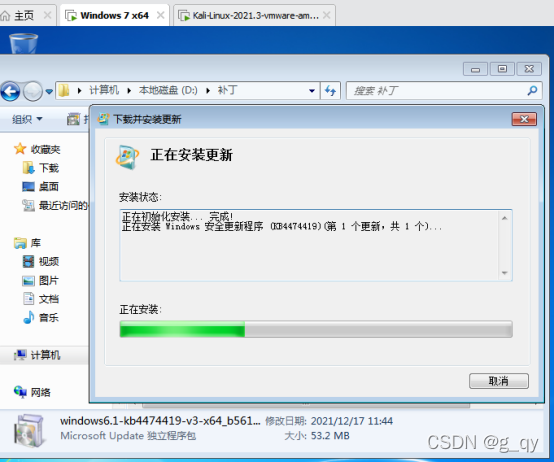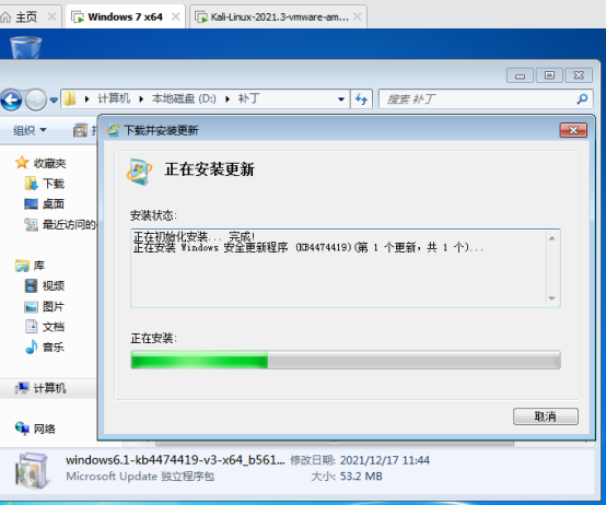1.在自己的物理机下载好补丁,拖到kali界面的win7文件夹里