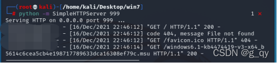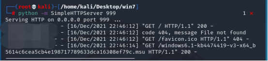 这个过程有点久,这个时候我们可以回到kali,能看到window7确实下载了文件