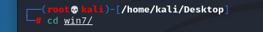 2.通过指令 cd /home/kali/Desktop/win7/ 进入win7文件夹