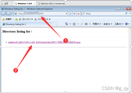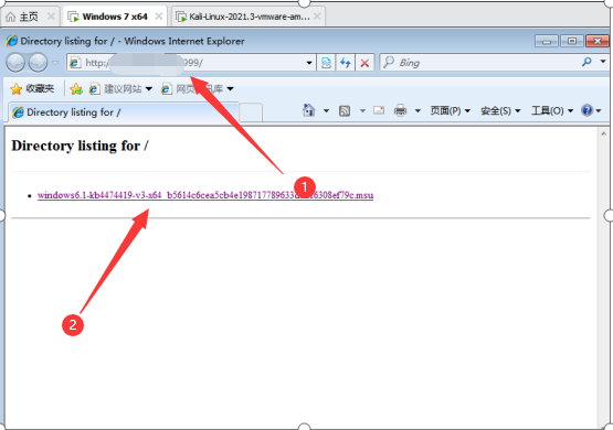 4.打开Windows7,在浏览器中输入http://kali的ip:999 下载文件,保存,运行
