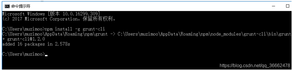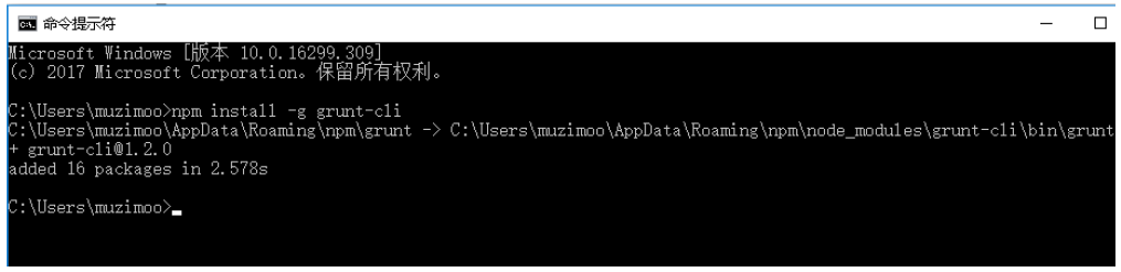 4)将grunt安装为全局命令 ,Grunt是基于Node.js的项目构建工具