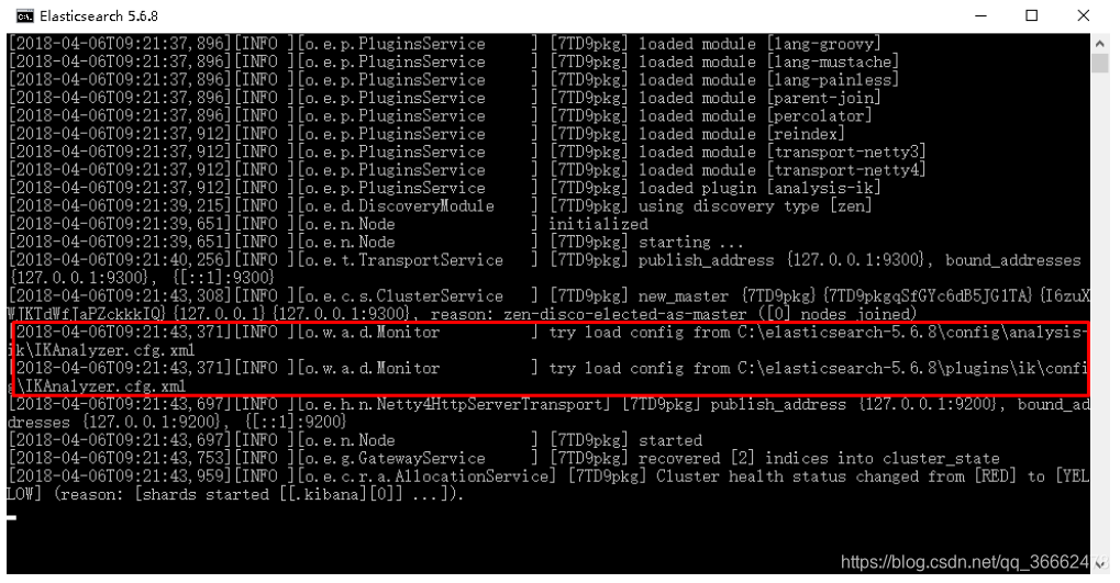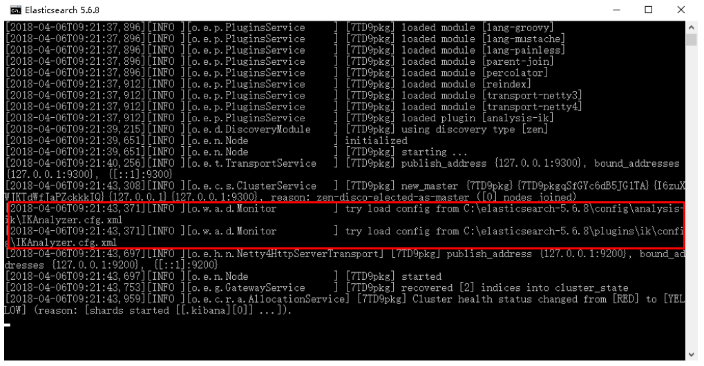 3)重新启动ElasticSearch,即可加载IK分词器