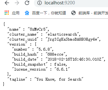 通过浏览器访问ElasticSearch服务器,看到如下返回的json信息,代表服务启动成功: