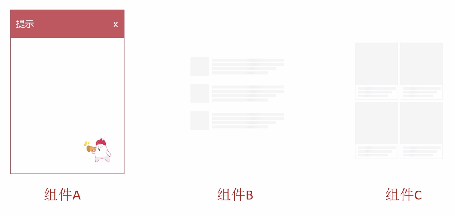 第一步:对组件进行拆分首先是外层相同的框为A组件,里面内容分别为B组件和C组件