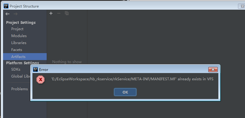 注意:如果上一步点OK后报下图的错误,说明选择的目录已经生成过MANIFEST.MF配置文件;