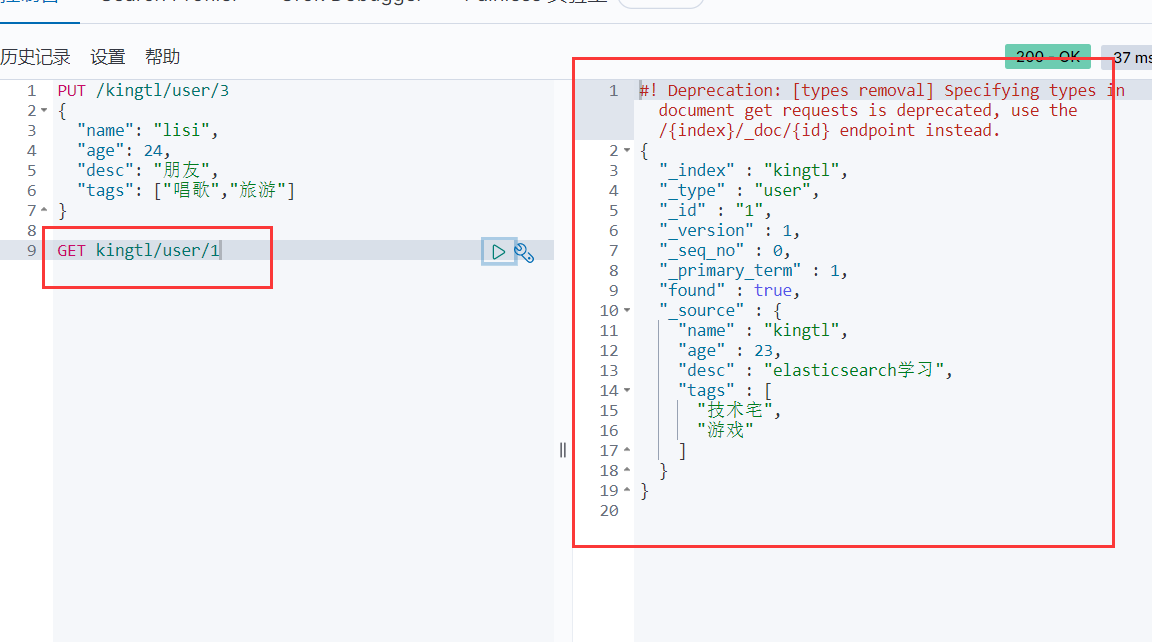 System.out.println(indexResponse.status()); //对应命令返回的状态 CREATED