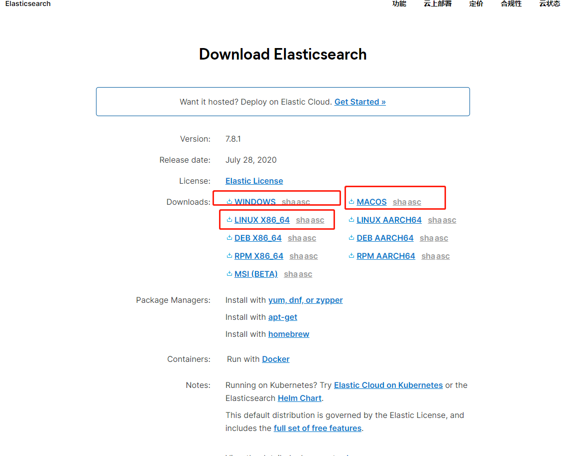 下载地址:https://www.elastic.co/cn/downloads/elasticsearch