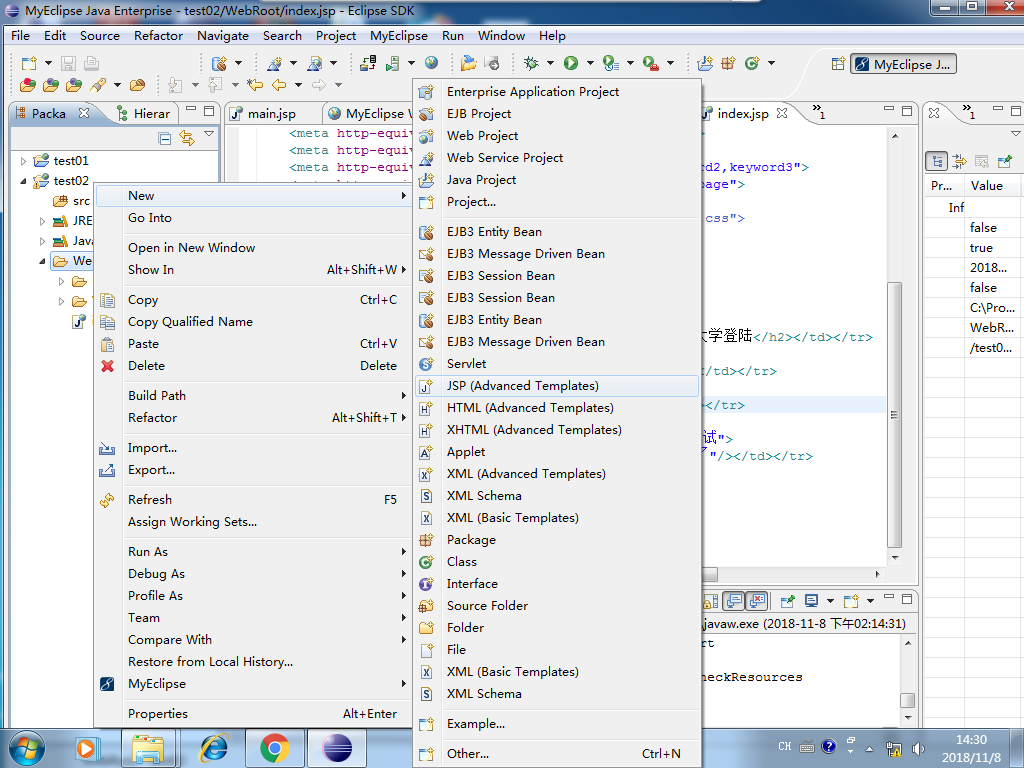 但是通常网站提交的值会传递至另一个页面显示,接下来创建一个新的页面MyJsp.jsp。