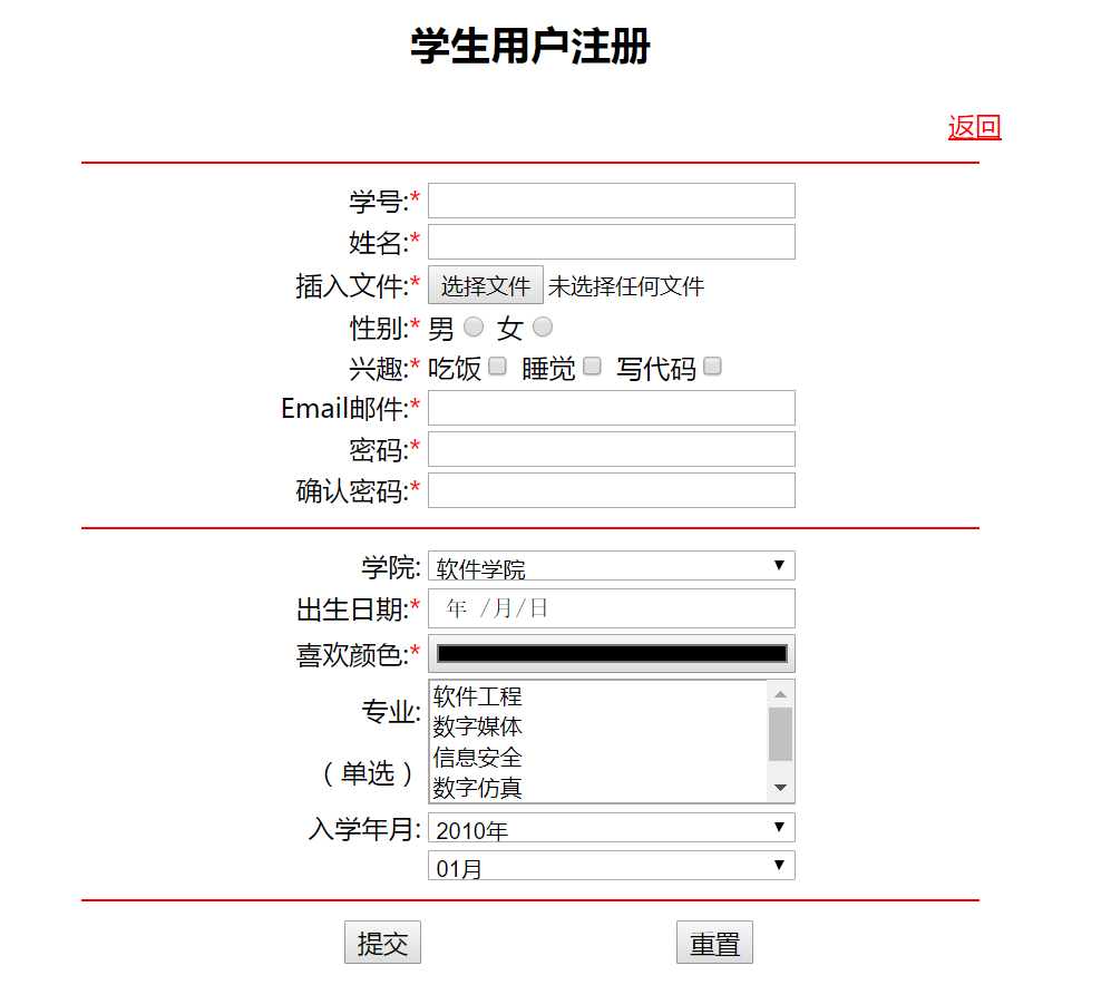 <td colspan="2" align=center><H2>学生用户注册</H2></td>