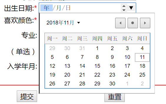 <td><div align="right">出生日期:<span class="STYLE1">*</span></div></td>
