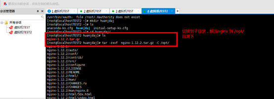 [root@localhostTEST2 huanjdaj]# tar -zxvf nginx-1.12.2.tar.gz -C /opt/