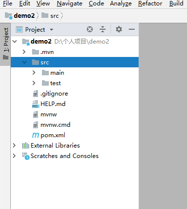 这个是第一次创建出来的完整的结构,我们这里把这个src给删了,如下图所示: