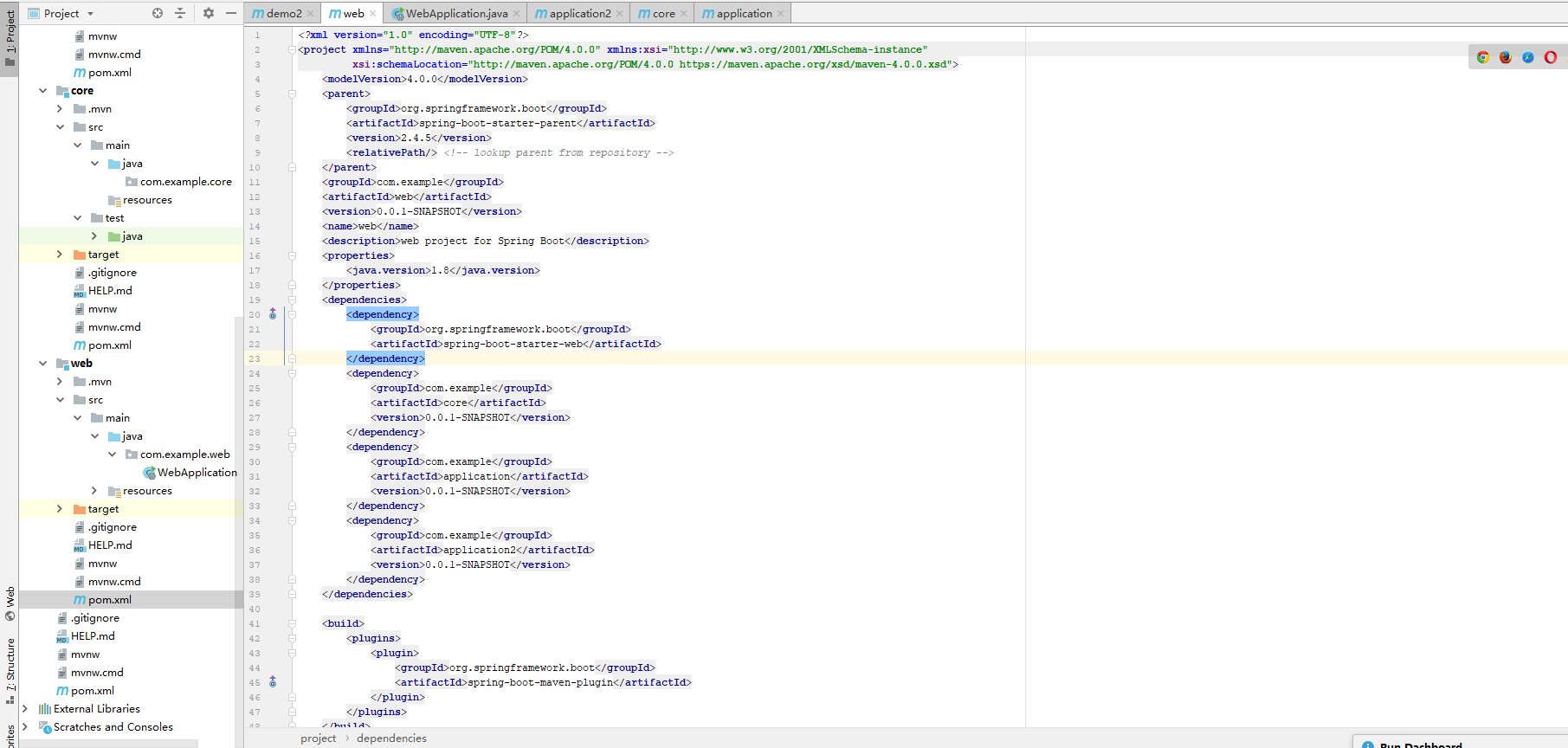 接下来我们需要对core模块进行操作,首先我们需要先打开demo2的pom文件