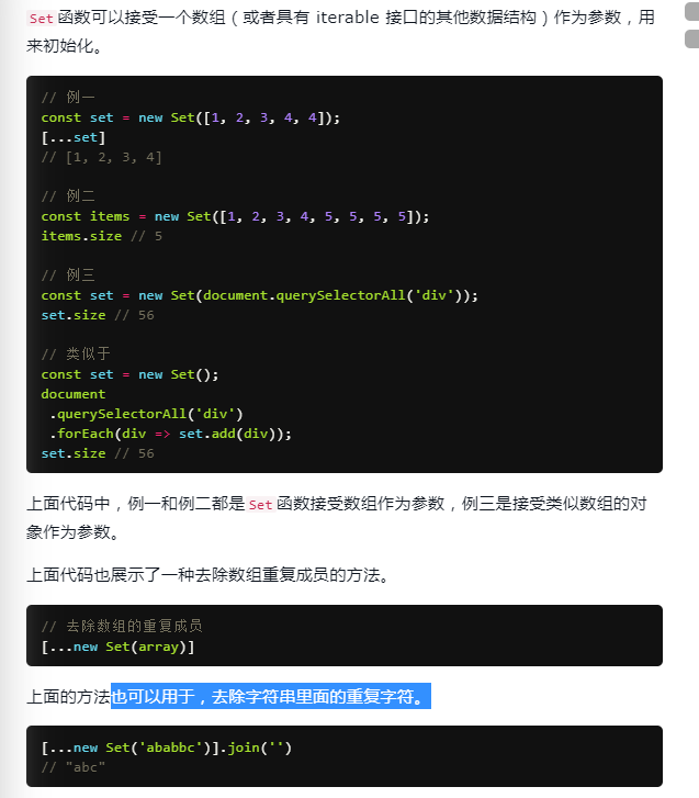 可以用于数组去重,也可以字符串去重,因为里面的值都是唯一的。
