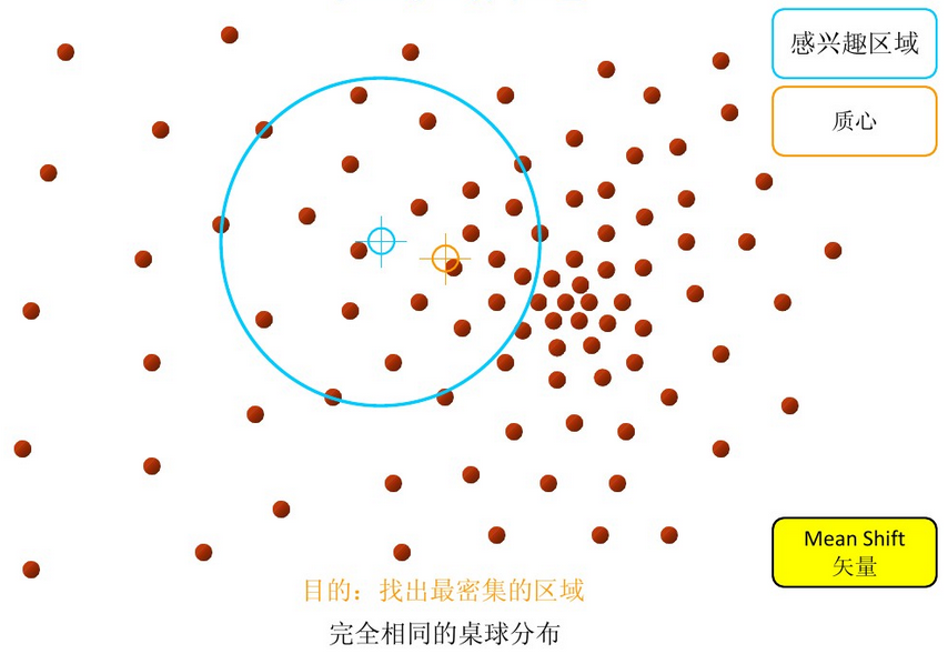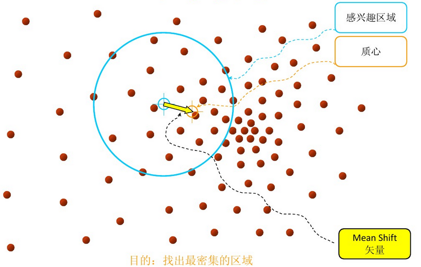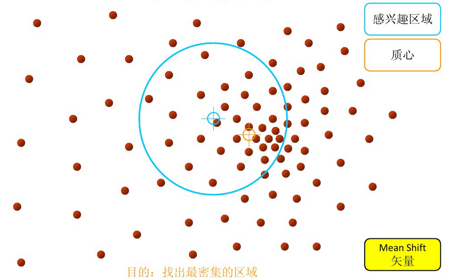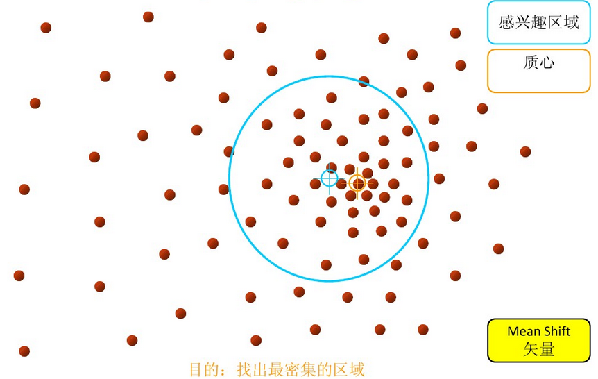 对于Mean Shift算法,是一个迭代的过程,即先算出当前点的偏移均值,将该点移动到此偏移均值,然后以此为新的起始点,继续移动,直到满足最终的条件。