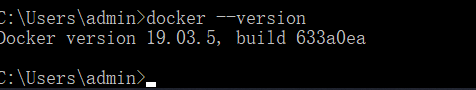 3、安装完成之后,使用cmd命令,docker --version,如下图显示版本号即为成功。