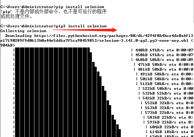 cmd(command)里输入pip install selenium或pip3 install selenium,回车 ---常用!!
