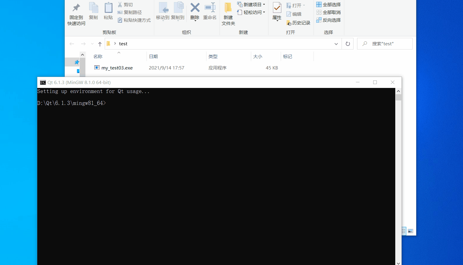 这里我就在桌面创建test的文件夹,并把exe文件粘贴到里面