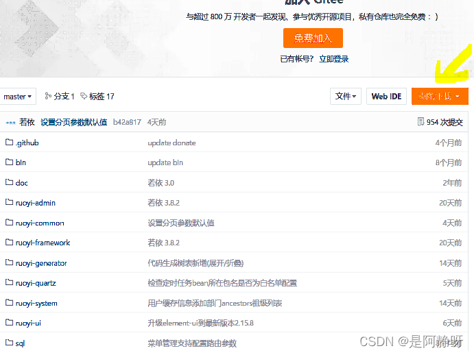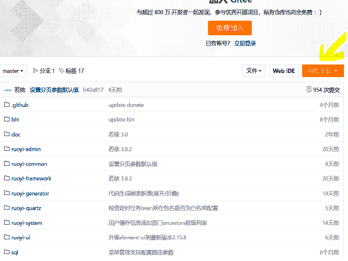 1、使用git下载官方代码https://gitee.com/y_project/RuoYi-Vue