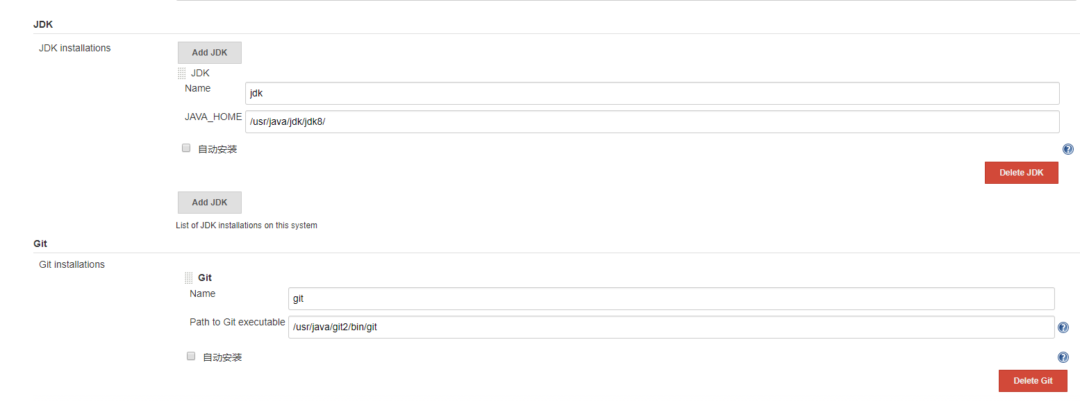 2.先确定tomcat没问题,然后将jenkins.war上传到webapps目录下面,然后启动tomcat会自动编译出一个jenkins的文件夹,使用http://ip:8080/jenkins的方式访问,会出现要一个密码:vim /root/.jenkins/secrets/initialAdminPassword直接查看密码,输入.创建用户之后就可以使用了.下面是配置